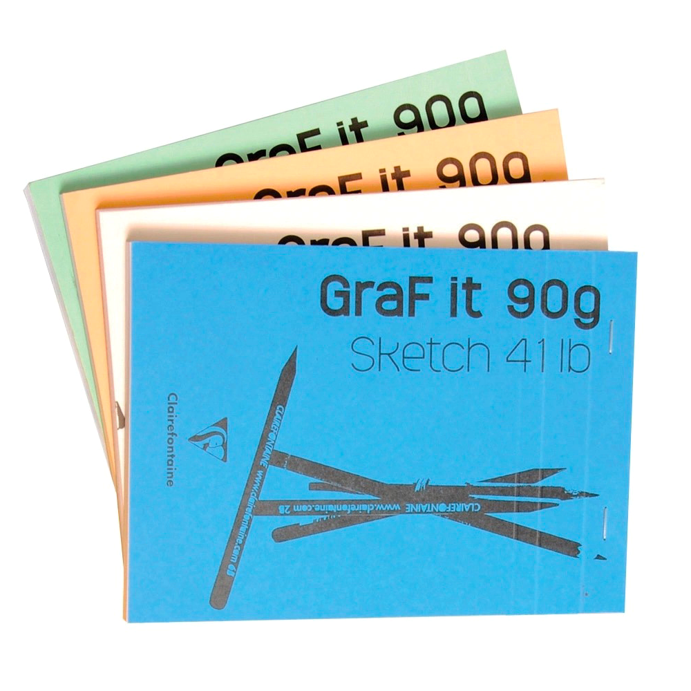 The Clairefontaine Graf it sketch pads are glued and stapled at the top with micro-perforated sheets for easy and clean removal and a sturdy cardboard inside the back cover for students and artists on the go.