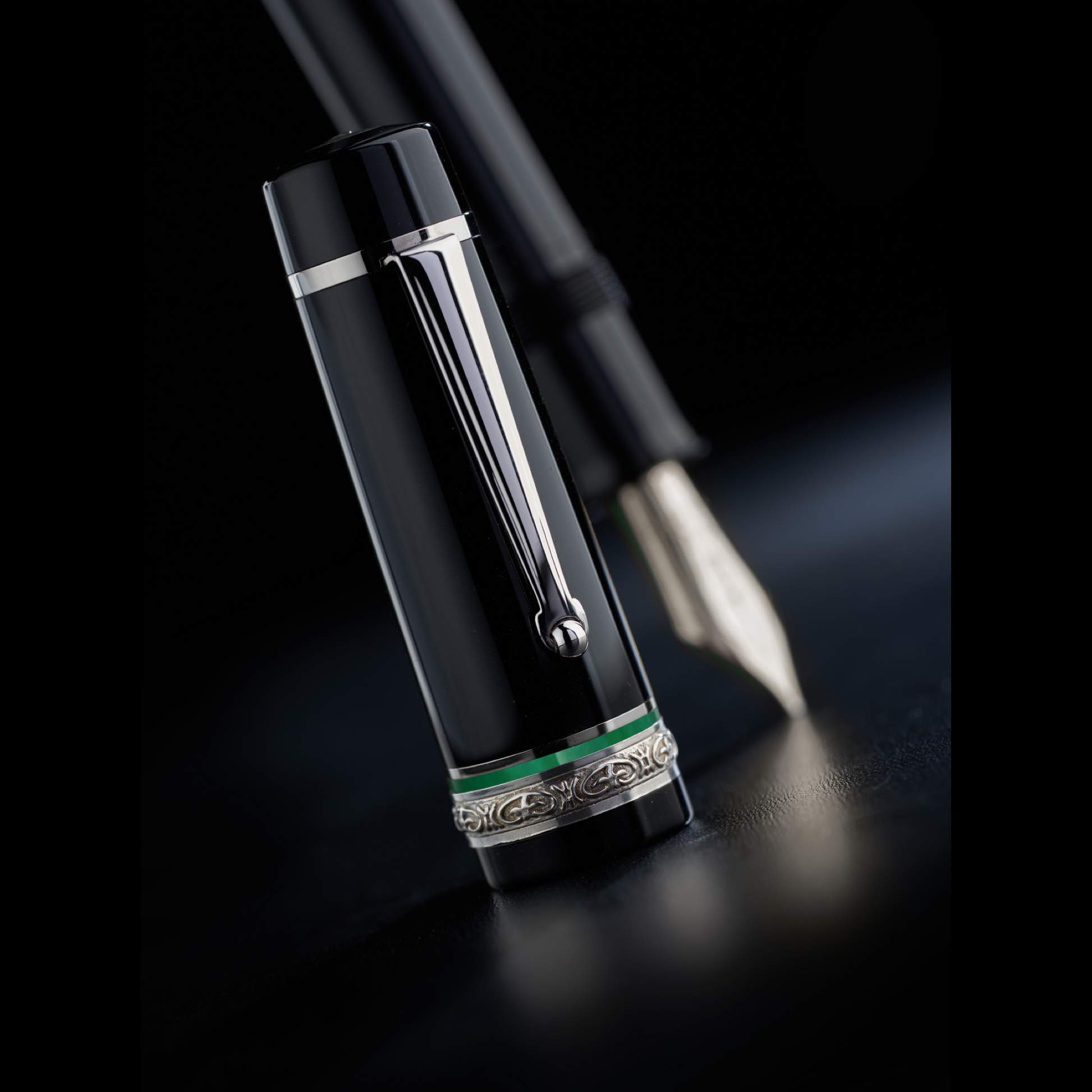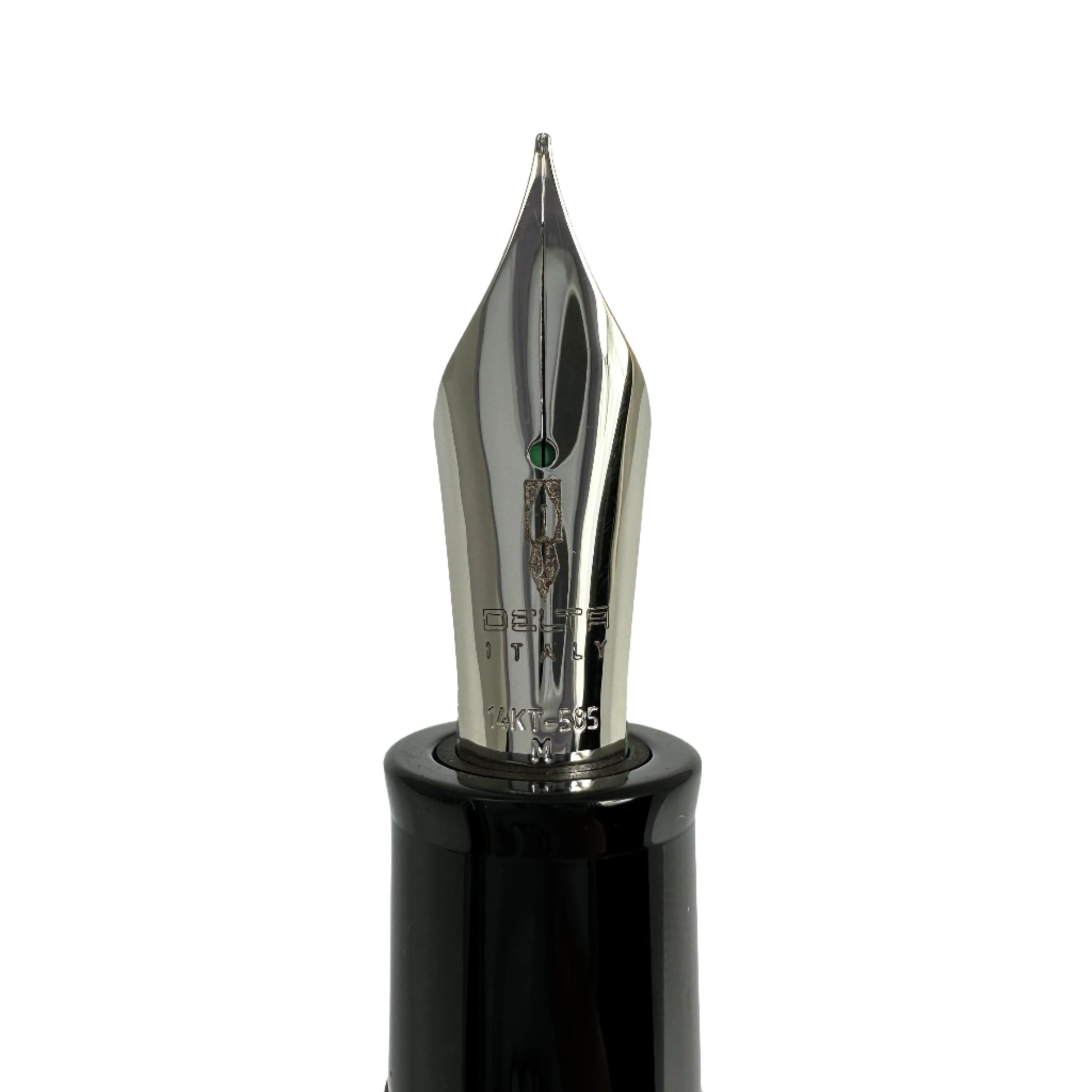 The Delta DV Original Magnifica Oversize fountain pens are handmade. Polished by hand, the sterling silver trims showcase Delta craftsmen's exquisite detail in the classic design's center ring and provide emphasis to the subtle Delta logo included on the pen cap's inset finial. Each Delta DV Original Magnifica Oversize fountain pen is packaged in an elegant Delta pen box and includes a full-size bottle of fountain pen ink. The Delta DV Original Oversize fountain pen's thicker barrel and cap support the addition of the stunning #8 size nib.