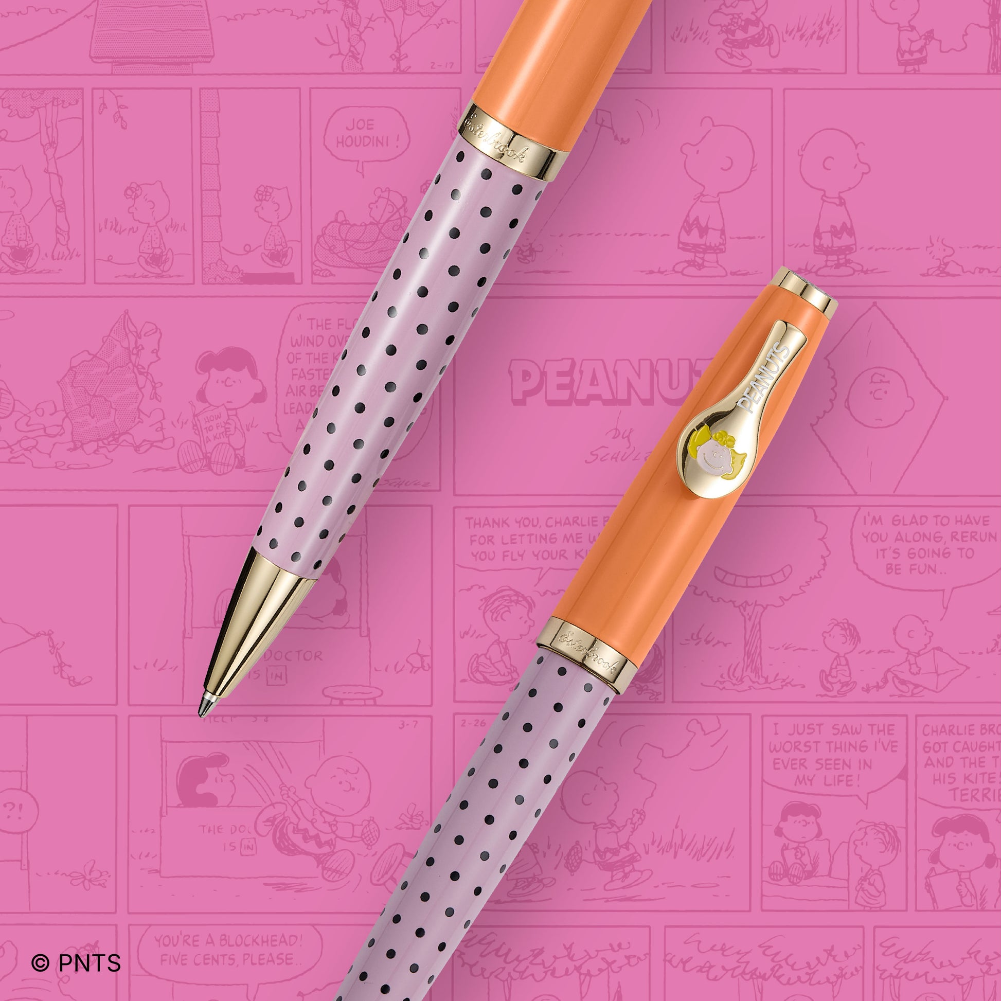Bright, bubbly, and totally Sally—this pink polka-dotted Esterbrook pen is made for whimsy. Write letters to Linus, jot down your secret crush, or plan the next big adventure with Peanuts flair. Fountain pen or ballpoint, the nibs are available in Medium and Fine, with “Good Grief” engraved for a playful touch. Comes with a cloth inspired by Sally’s outfit for an extra touch of Peanuts charm