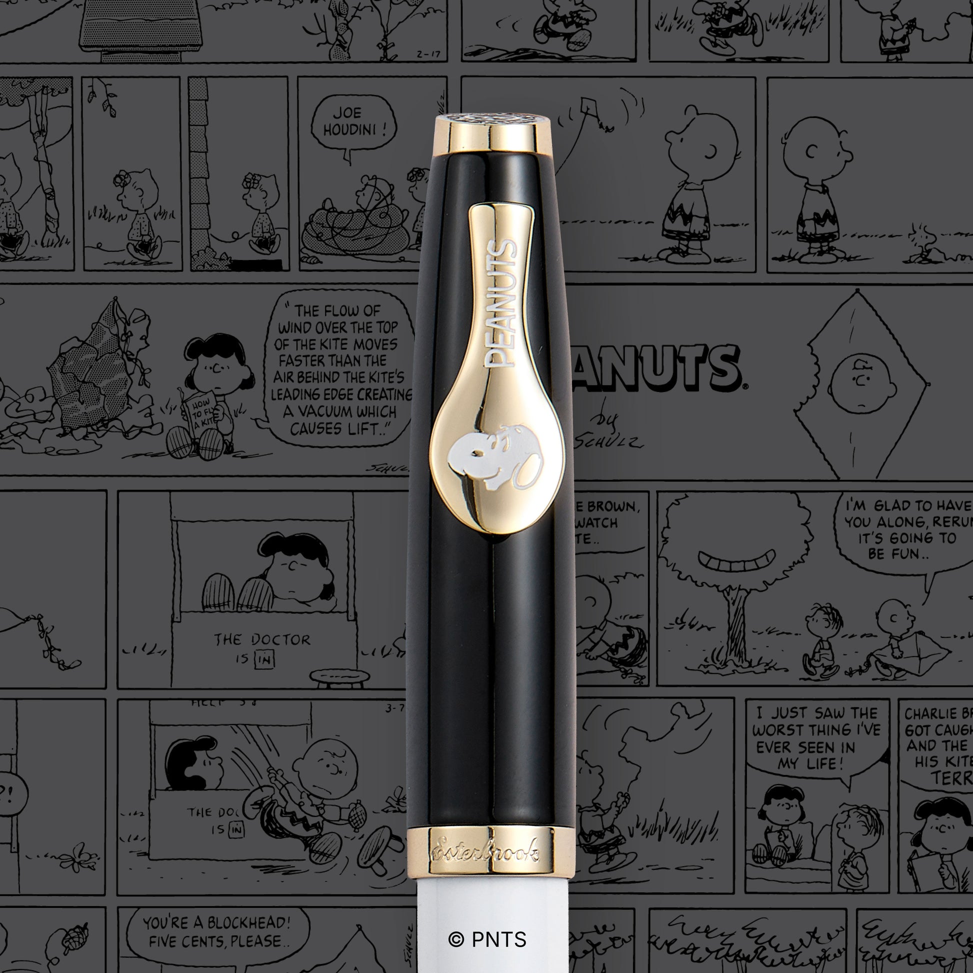 Let Snoopy’s whimsy guide your writing with this white-and-red Esterbrook pen. From diary entries from the Flying Ace to notes for his best pal Charlie Brown, every pen adds personality to your desk. Fountain pen or ballpoint, Medium and Fine nibs, engraved with “Good Grief,” and a matching cloth echoing Snoopy’s iconic style make this collectible a true Peanuts classic.