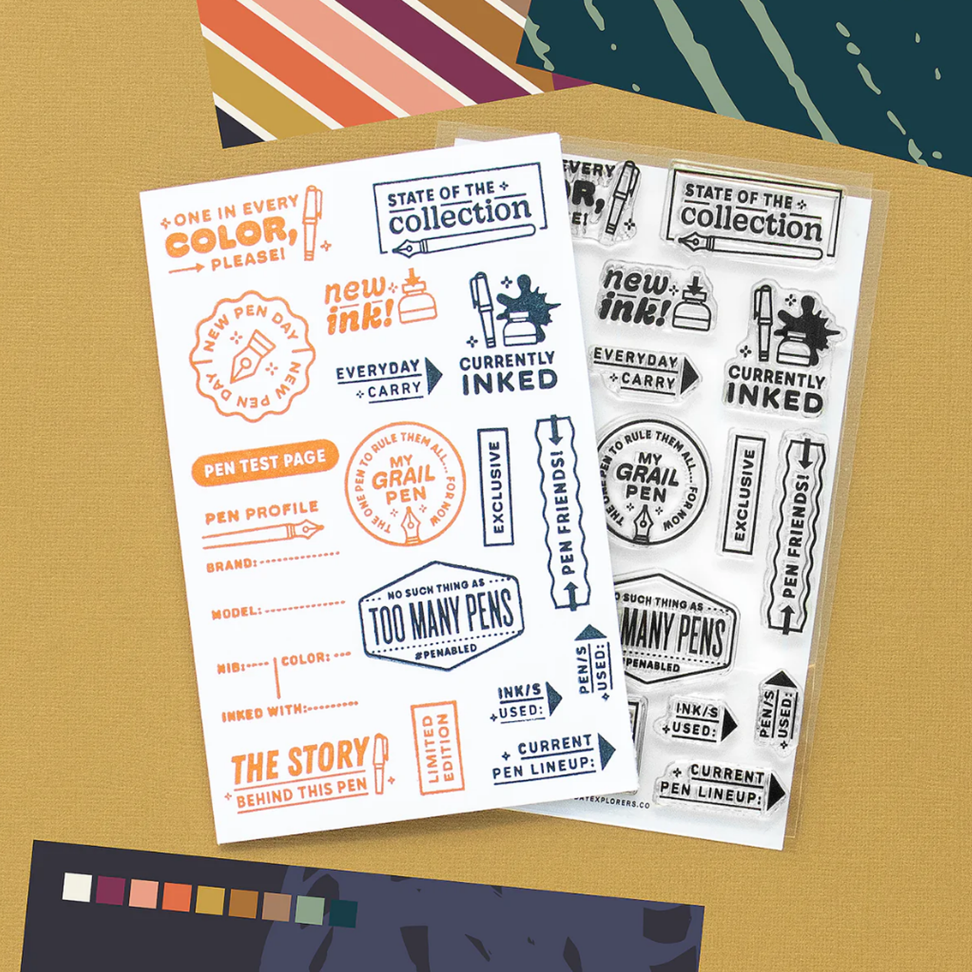 Here's a fun stamp set that helps record the thrill that is a brand-new (or old favorite) pen! It's perfect for recording the inks you're using, your pen collection or the pen of the day!