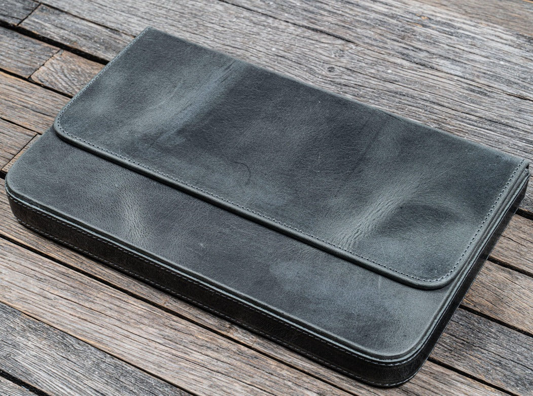 Keep your favorite pen collection safe with our Crazy Horse Smokey Grey Leather Magnum Opus 12 Slots Hard Pen Case, featuring a removable velvet tray with individual dividers and a magnetic closure for ease of use. You'll have the piece of mind knowing your favorite pens won't be scratched or damaged when carrying them around in your bag, handbag or backpack. Suitable for most fountain pens and other type of pens.