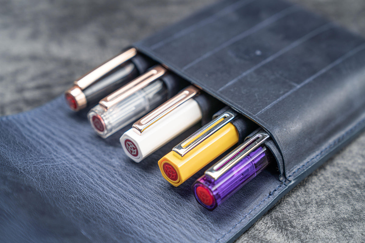 Our Leather Flap Pen Case will protect your valuable pens or fountain pens in your bag or jacket pocket from leaking everywhere, getting scratched, or ruined. Suitable for most of the Fountain pens, even an oversized Montblanc 149 or a Pelikan m1000 and other types of pens. The flap cover closes with hidden magnetic closure.