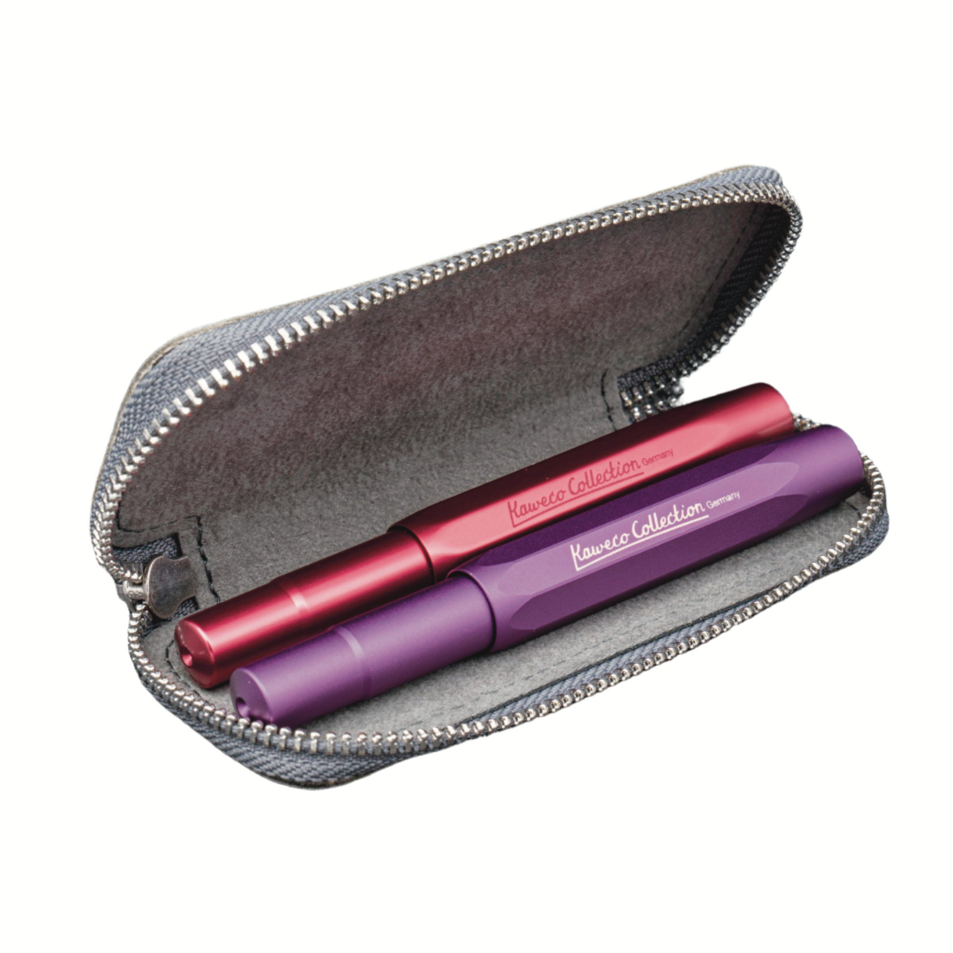 Our Leather Zippered Double Pen Case was specially created for fellow fountain pen lovers. Handmade from genuine leather, this double zippered pen case allows you to safely store your fountain pen or similar sized Kaweco pocket pen to protect it from scratches or leaking in your pocket or bag. Can store 2-3 Kaweco pens or similar sized fountain pens.