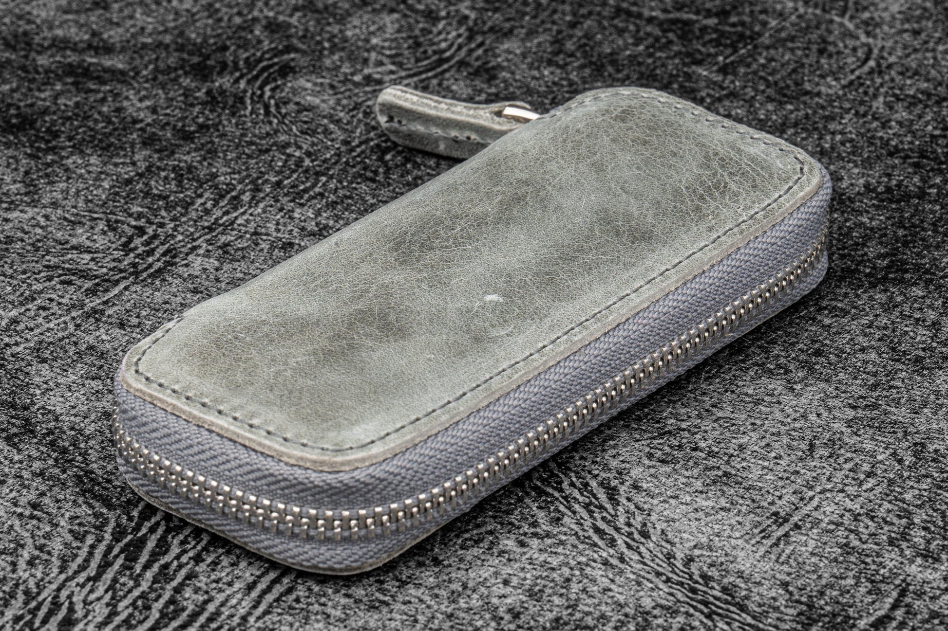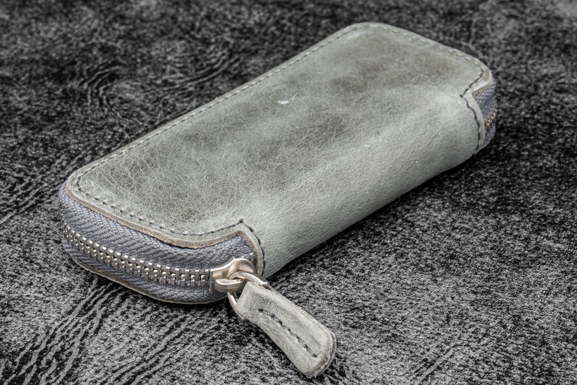 Galen Leather Double Zippered Pen Case for Kaweco Pocket Pen - Crazy Horse Smoky