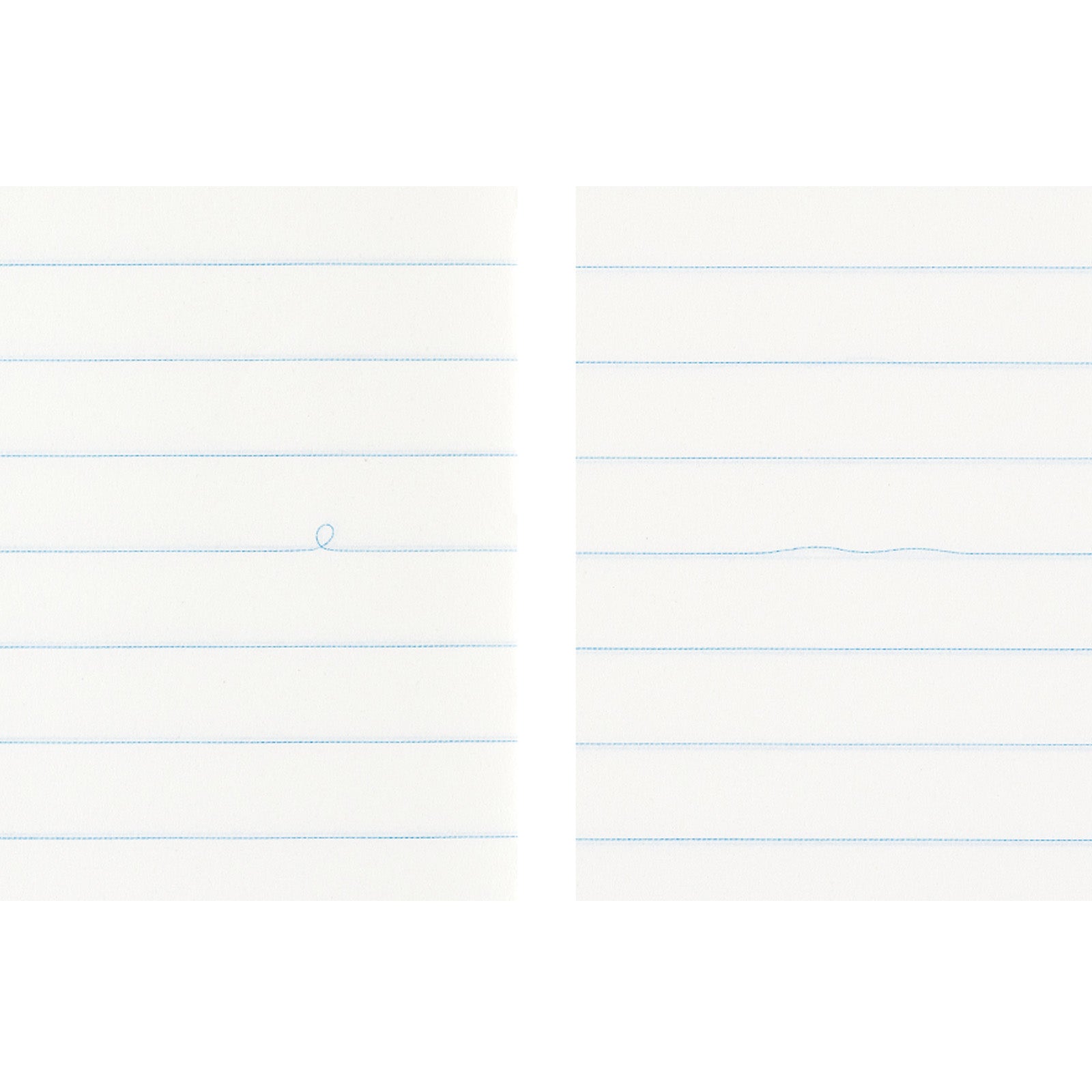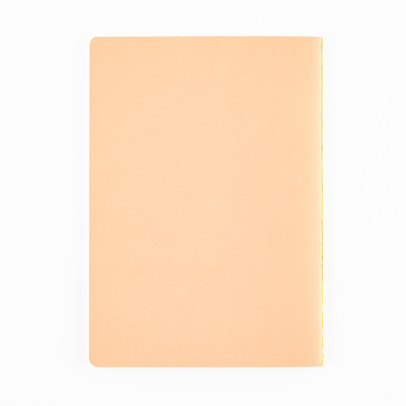 This B6 size notebook incorporates motifs based on the words of Safety Match. Some of the ruled lines are rounded or uneven as if written by hand. The lines are printed 7mm apart in blue, and the cover is a pale salmon pink..