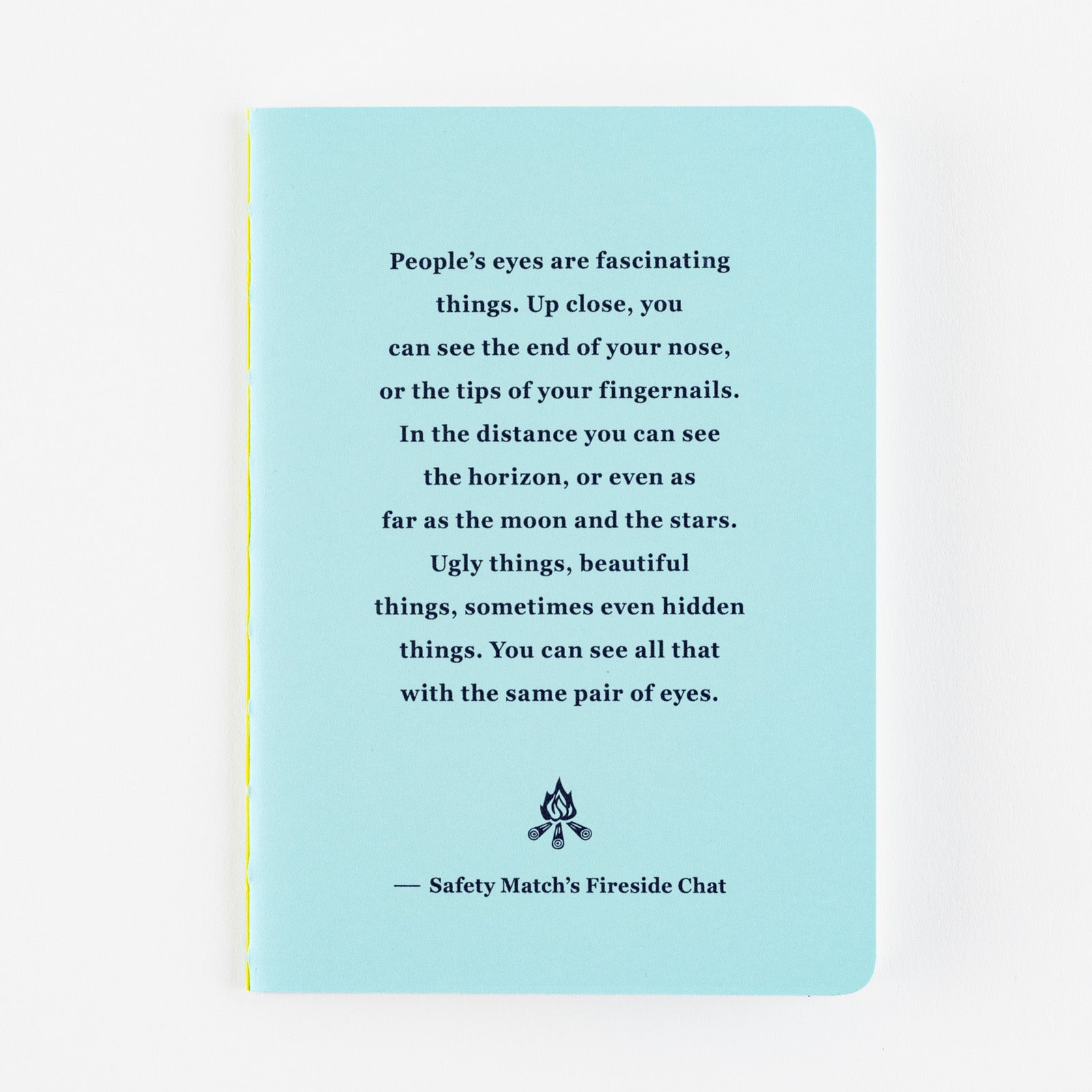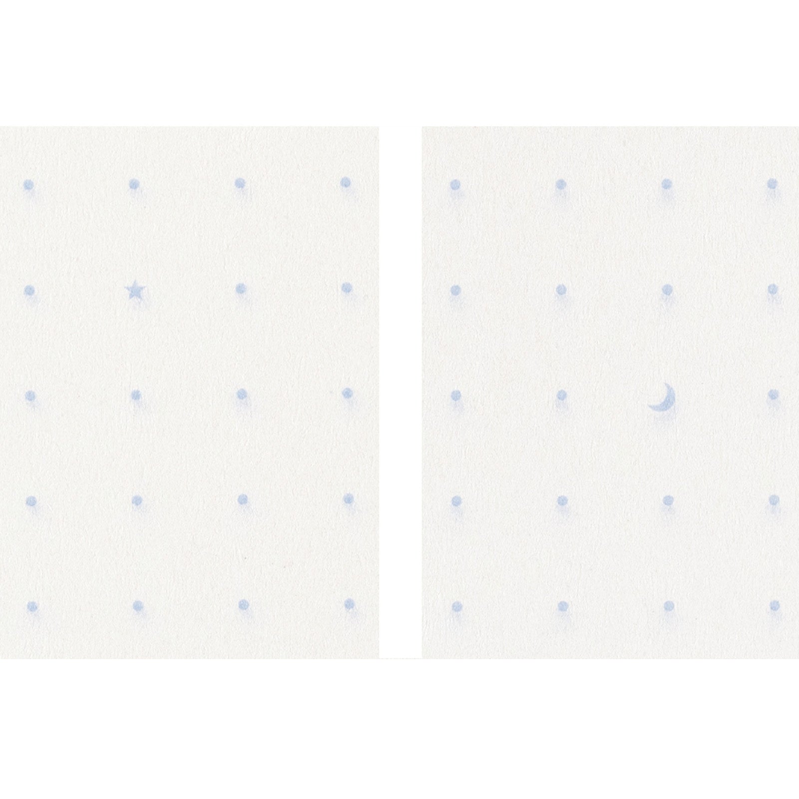 This B7 size notebook incorporates motifs based on the words of Safety Match. Look closely and you'll spot a star and moon within the dots. The dots on the pages are 5mm apart and printed in blue gray. The cover is a pale blue.