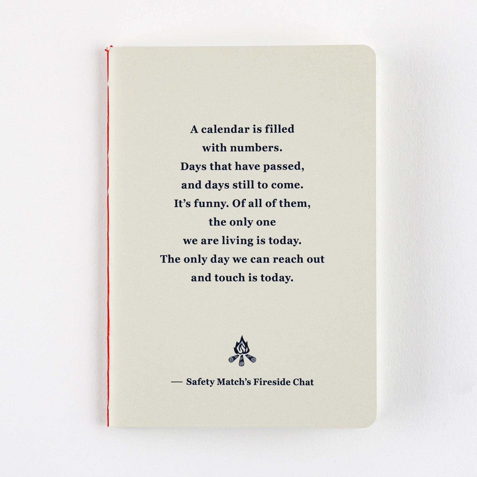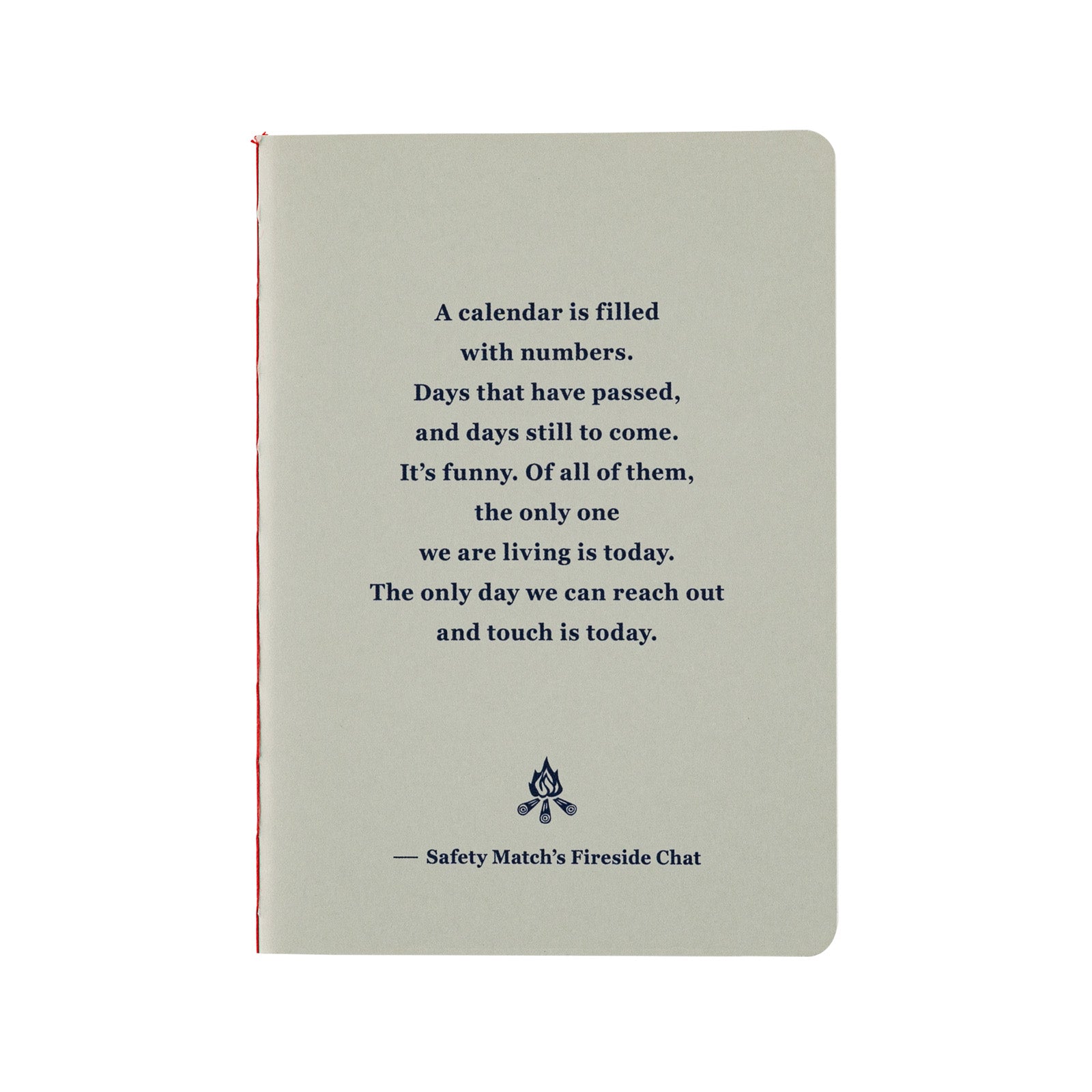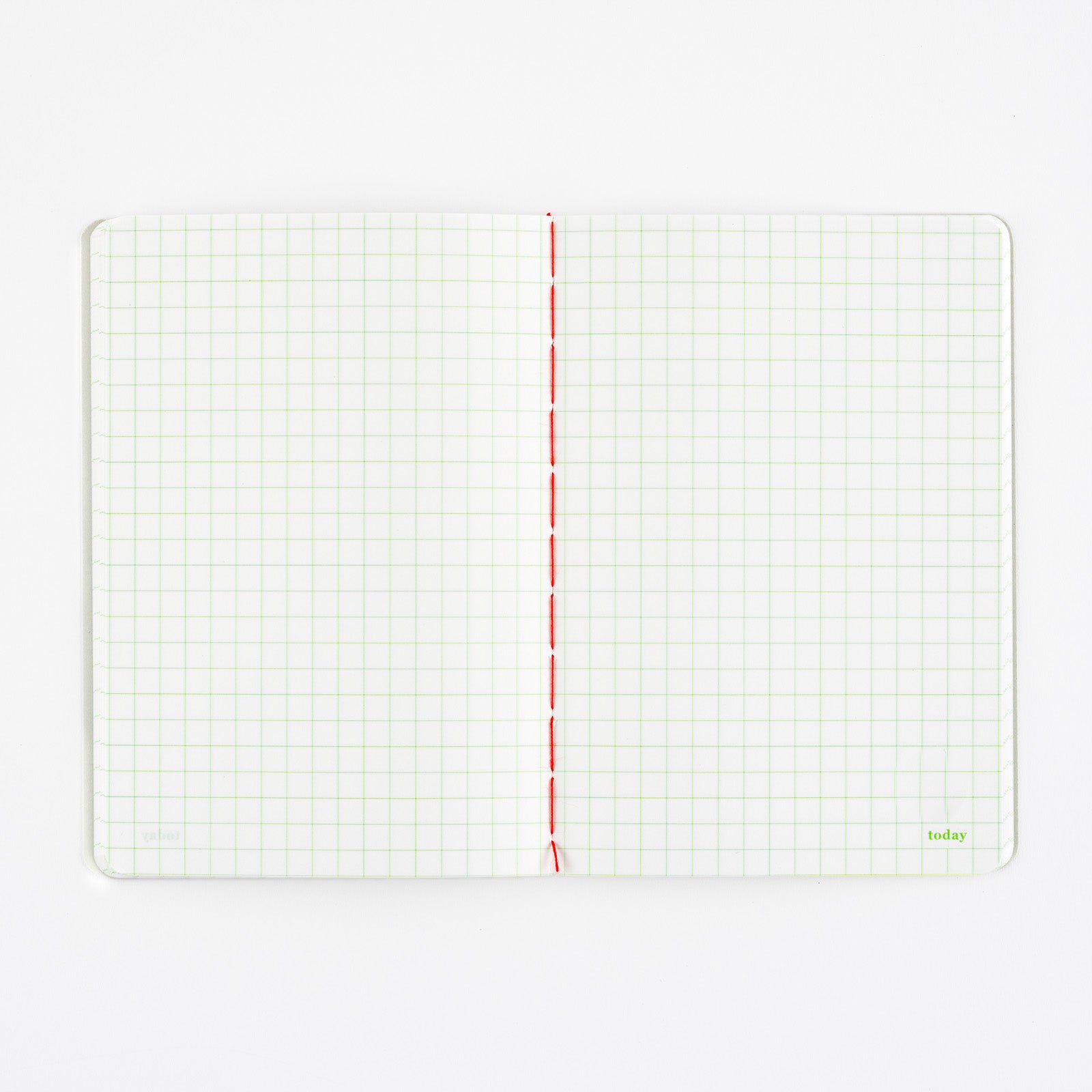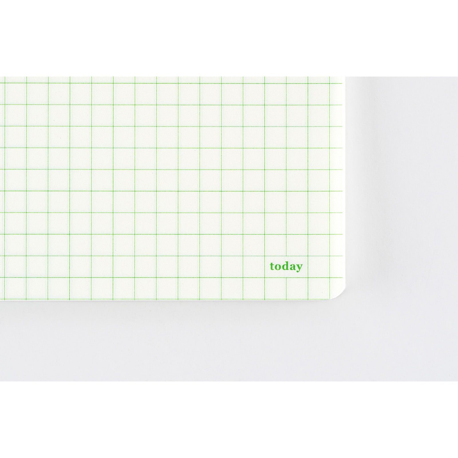 This B7 size notebook incorporates motifs based on the words of Safety Match. The corner of the page has the word "Today." The pages have a 5mm graph paper printed in green, and the cover is a pale gray.