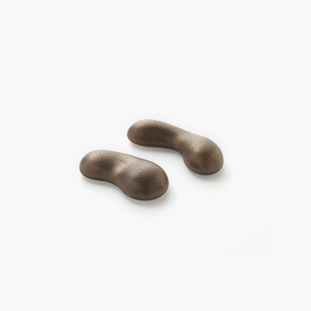 Porcelain clay and glazes, transformed by heat. The organic process results in pieces with unique imperfections from time to time. These Hasami pen rests in Kindei have pronounced variations in colour.