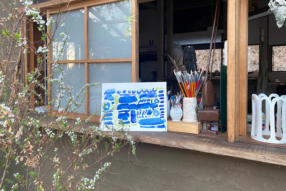 Higashi creates her works surrounded by nature at her home and atelier located at the foot of the Yatsugatake Mountains at an altitude of 1180m. Her work features whatever medium that catches her eye on her desk from coloured pencils and pens to acrylics and watercolours, and is characterised by a bold and colourful style.