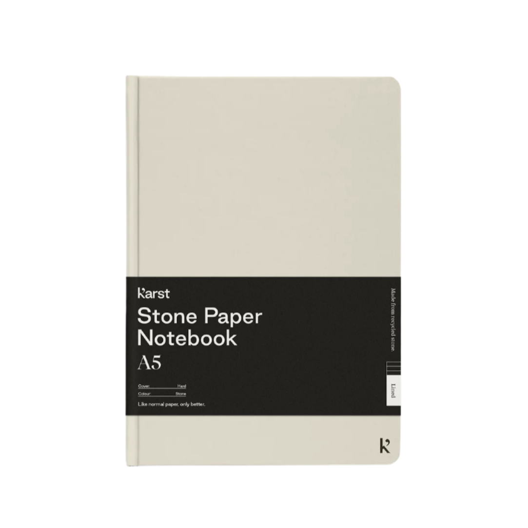 Best seller and crowd-pleaser. This tree-free A5 Hardcover Notebook is made from high-quality, sustainable, and recyclable stone paper. Thoughtfully designed with an expandable back pocket for extra storage, a divider ribbon that doubles as a bookmark for easy reference, and lay-flat binding for comfortable writing. An ideal choice for anyone looking for a premium notebook that stands out in both form and function