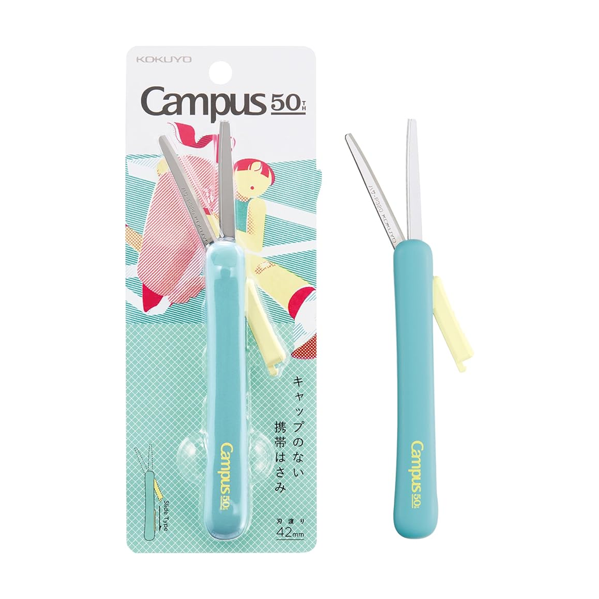Celebrate creativity with these stylish, pen-type portable scissors featuring a cap-free slide mechanism for quick, hassle-free use. Inspired by illustrator Hikaru-san Ichi, their trendy design fits easily in any pencil case. Equipped with Kokuyo’s Hybrid Arch Blade and a 3D glueless structure, they cut cleanly even through tape without sticking.