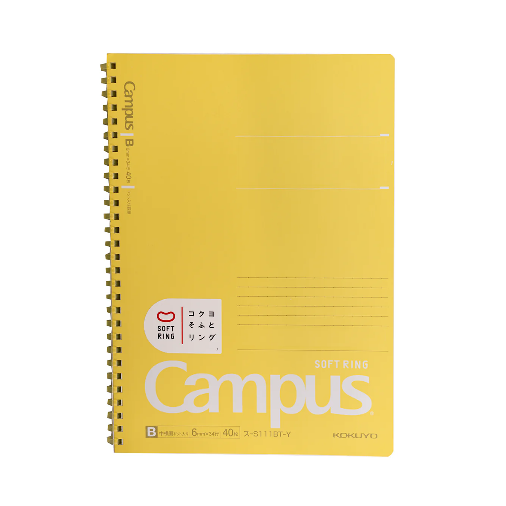 Enjoy the convenience of a spiral notebook without sacrificing writing or page-viewing comfort with Kokuyo Campus Soft Ring B5 Notebook - Purple. Utilizing Kokuyo's innovative "soft rings with a new touch" design, the rings are specially shaped in a "D-letter" form for a width that doesn't add bulk. Easily identify notebooks by their spine with the different ring colors, and tear out pages with the clean edges of the easy-cut pages. Get the perfect combination of convenience and comfort with the Kokuyo Campus Soft Ring B5 Notebook.
