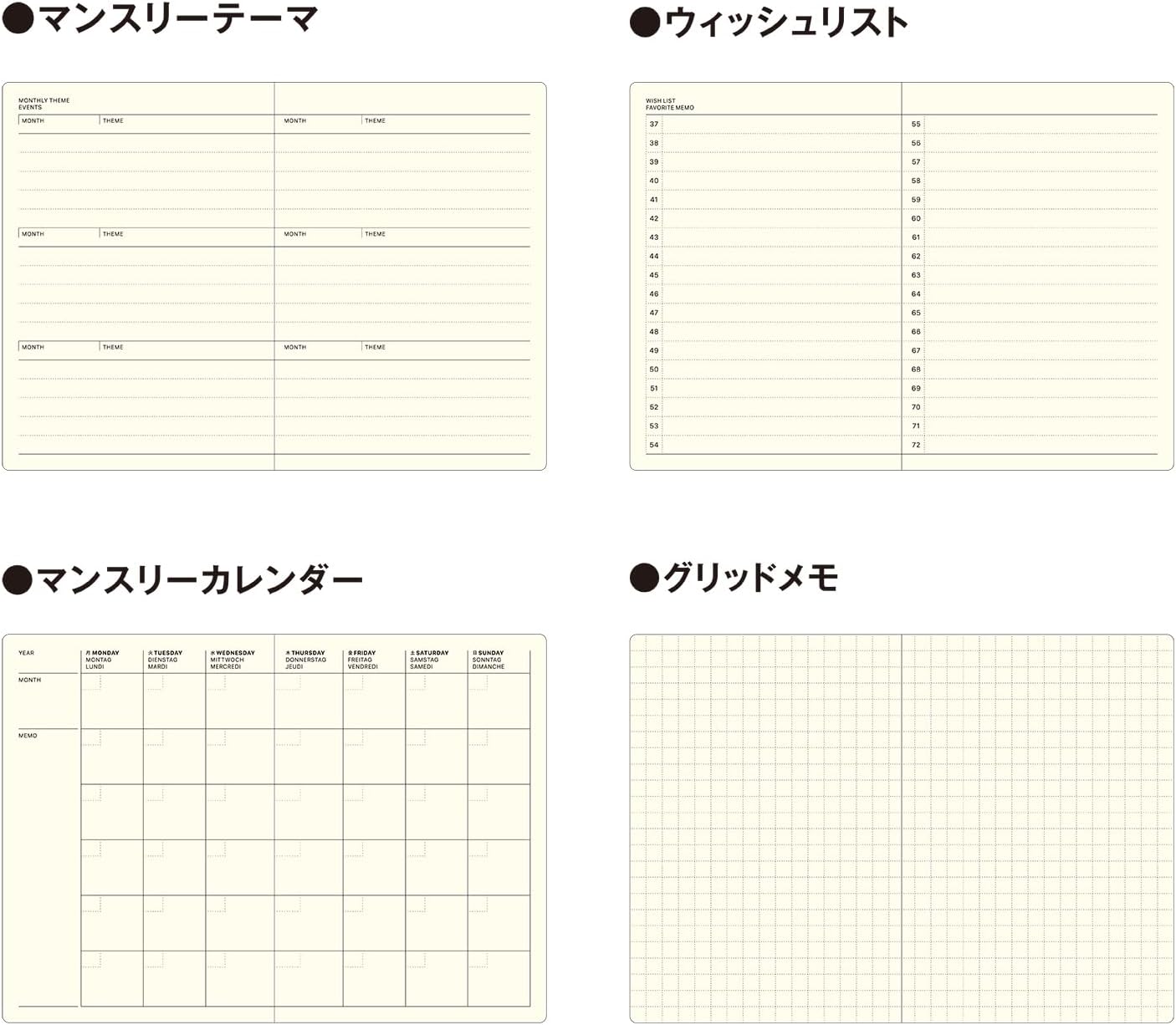 - Includes Monthly Theme, Monthly Calendar, Daily Log, Wish List, Grid Memo