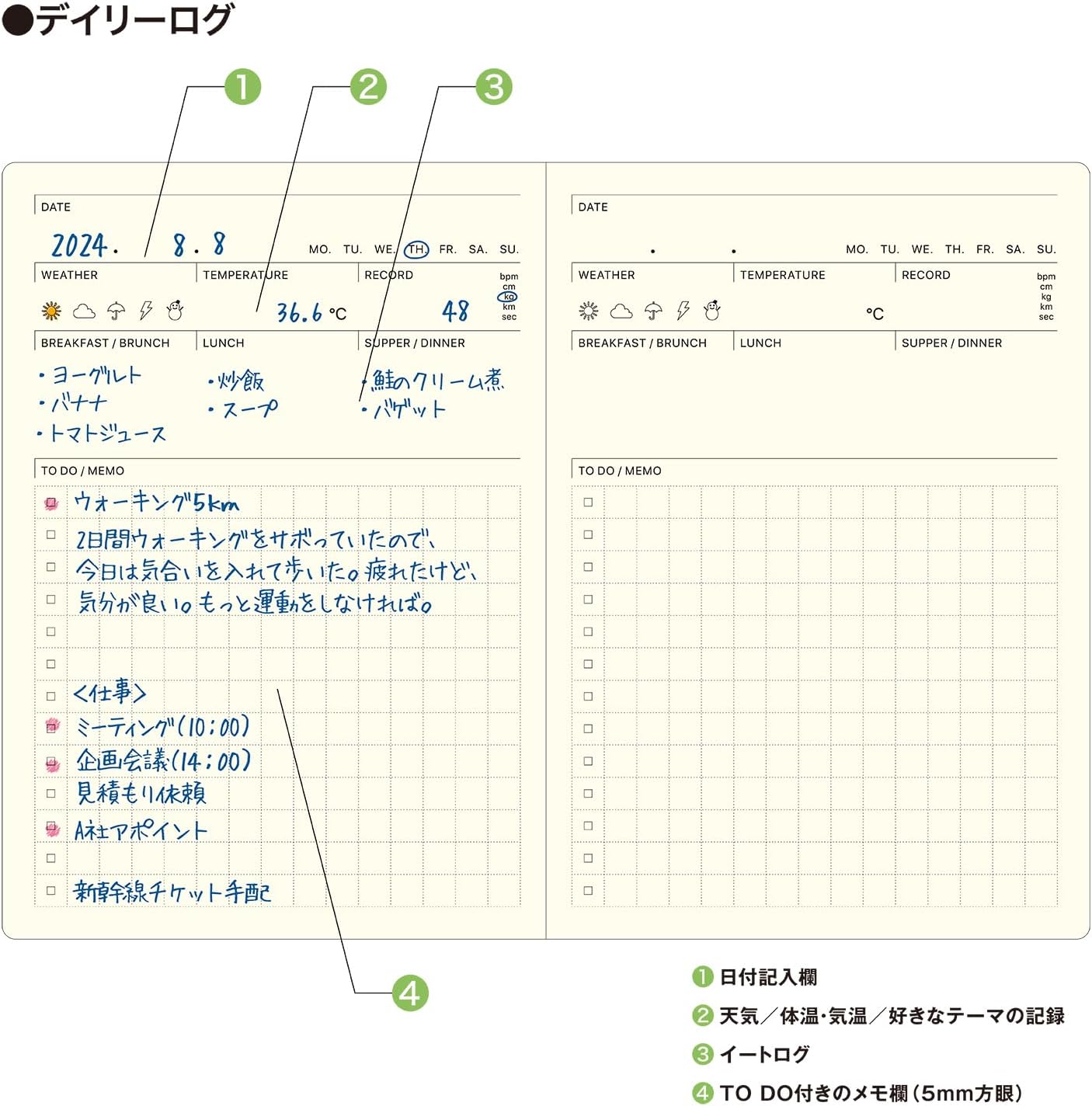 The Pocket Log Diary from Laconic is a compact daily journal that is easy to bring with you, with a rich layout that still allows you to record a lot of details about your daily life. On the daily page, there are designated places to log today's date, weather, temperature and even your meals. The bottom half of the page is a spacious to-do/memo section that features a grid and convenient check-boxes down the side. The 184 daily pages allow you to record 6 months of your life, but they are undated to allow for flexibility.