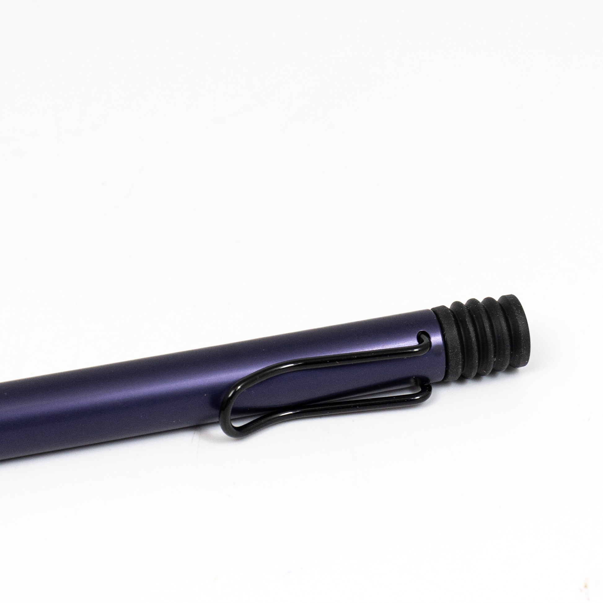 Lightweight ballpoint pen with ergonomic grip made of high-quality transparent plastic. Distinctive metal clip and resistant body made of anodised aluminium. Including giant ballpoint pen refill LAMY M 16 in size M in black.