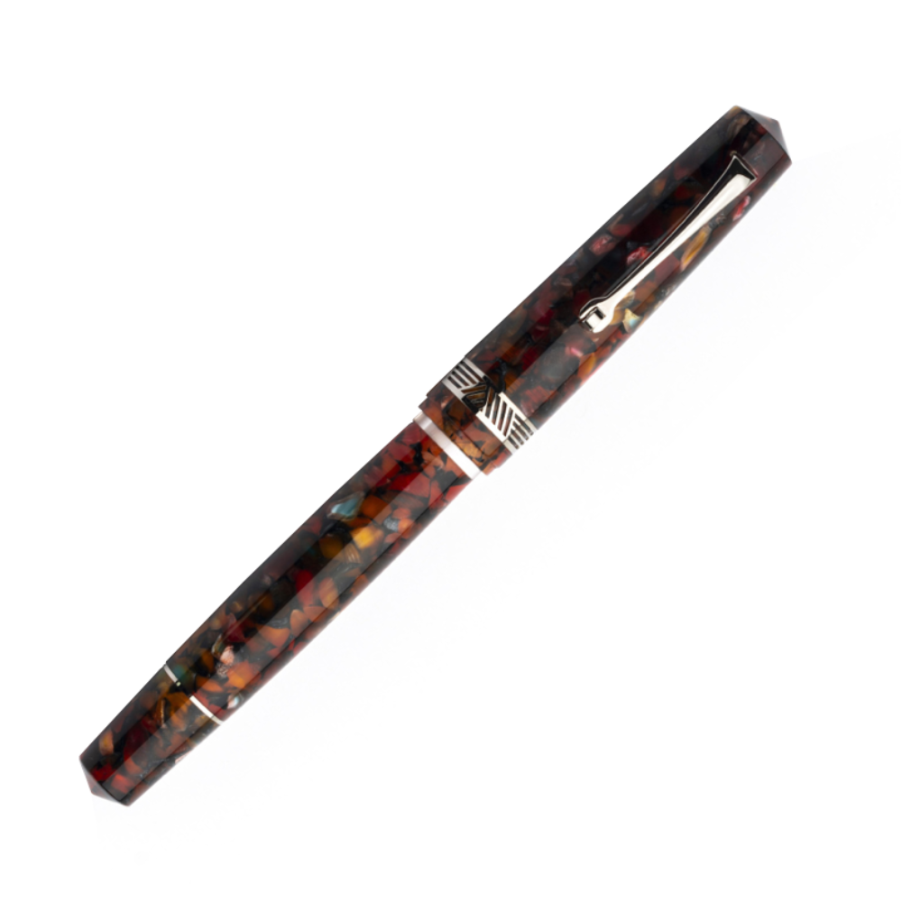 Millefiori translates to a thousand flowers and is also the glassmaking technique that Murano glassmakers are famous for. We chose this resin as an imagination of fall flowers translated to this exquisite craft of millefiori.