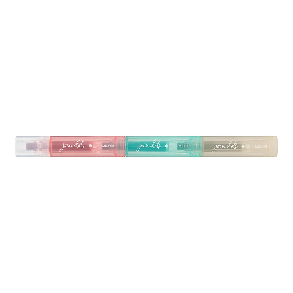 Midori's Join Dot is a 3-color linked marker inspired by the Commonplace Books system of color-coding your notebook. The circular nib allows you to easily press dotes onto your notes. By adjusting the angle, you can also apply thick or thin lines.