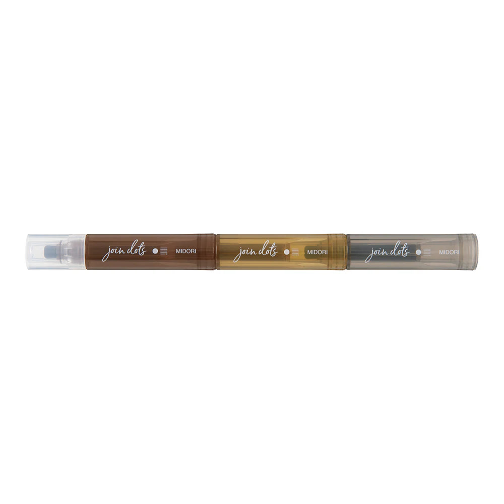 Midori's Join Dot is a 3-color linked marker inspired by the Commonplace Books system of color-coding your notebook. The circular nib allows you to easily press dotes onto your notes. By adjusting the angle, you can also apply thick or thin lines.