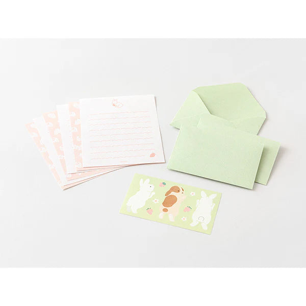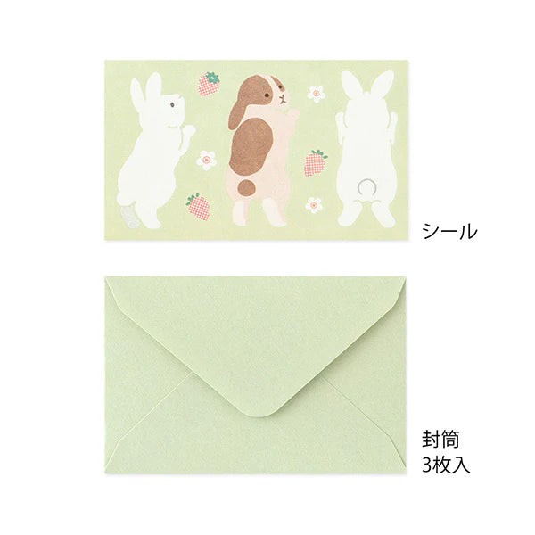 This Midori Mini Letter Set features a playful and charming hungry bunny motif that will bring joy to both the sender and receiver. The blue letter paper and wave-like lines add to the theme, while the stickers of unique animals and food add a fun touch. Perfect for short messages, souvenirs, and gifts.