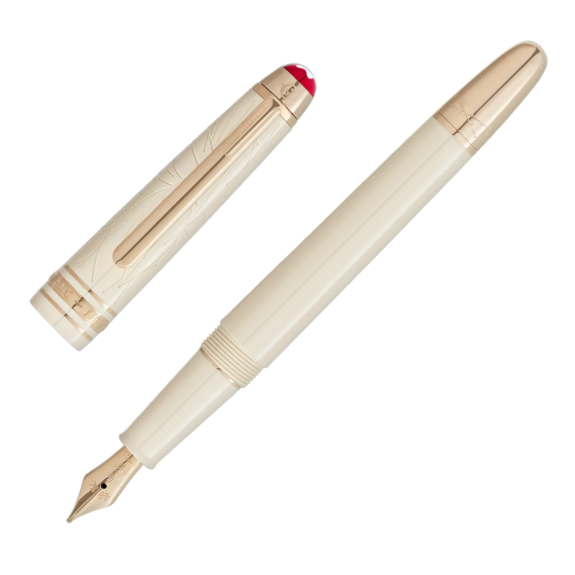 William Shakespeare’s Romeo and Juliet have gained immortality as the embodiment of unconditional love unto death. The story of the two lovers, who perish due to the enmity between their families, is to this day one of the most pertinent and moving literary works ever written. The Montblanc Meisterstück Romeo and Juliet collection is dedicated to this milestone in world literature. The Classique Fountain Pen is dedicated to Juliet and takes her lover’s famous plea 'O, speak again, bright angel!' as the inspiration for the pattern of feathered angel’s wings on the cap. The resin edition combines ivory-coloured precious resin and signature gold-coated fittings. The handcrafted nib, made of solid Au 585 gold bears a highly symbolic embossing: the name ‘Juliet’ immortalised within a heart pierced by a dagger and framed by star-like rays.