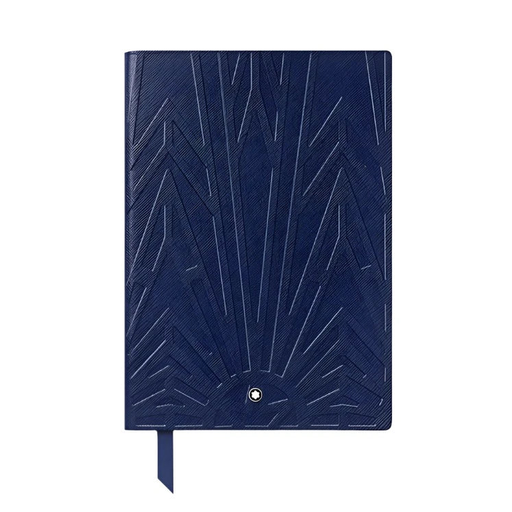 Notebook #163 medium, Meisterstück The Origin Collection, Blue - Lined. The Art Déco pattern featured on the writing instruments is embossed on the front cover.