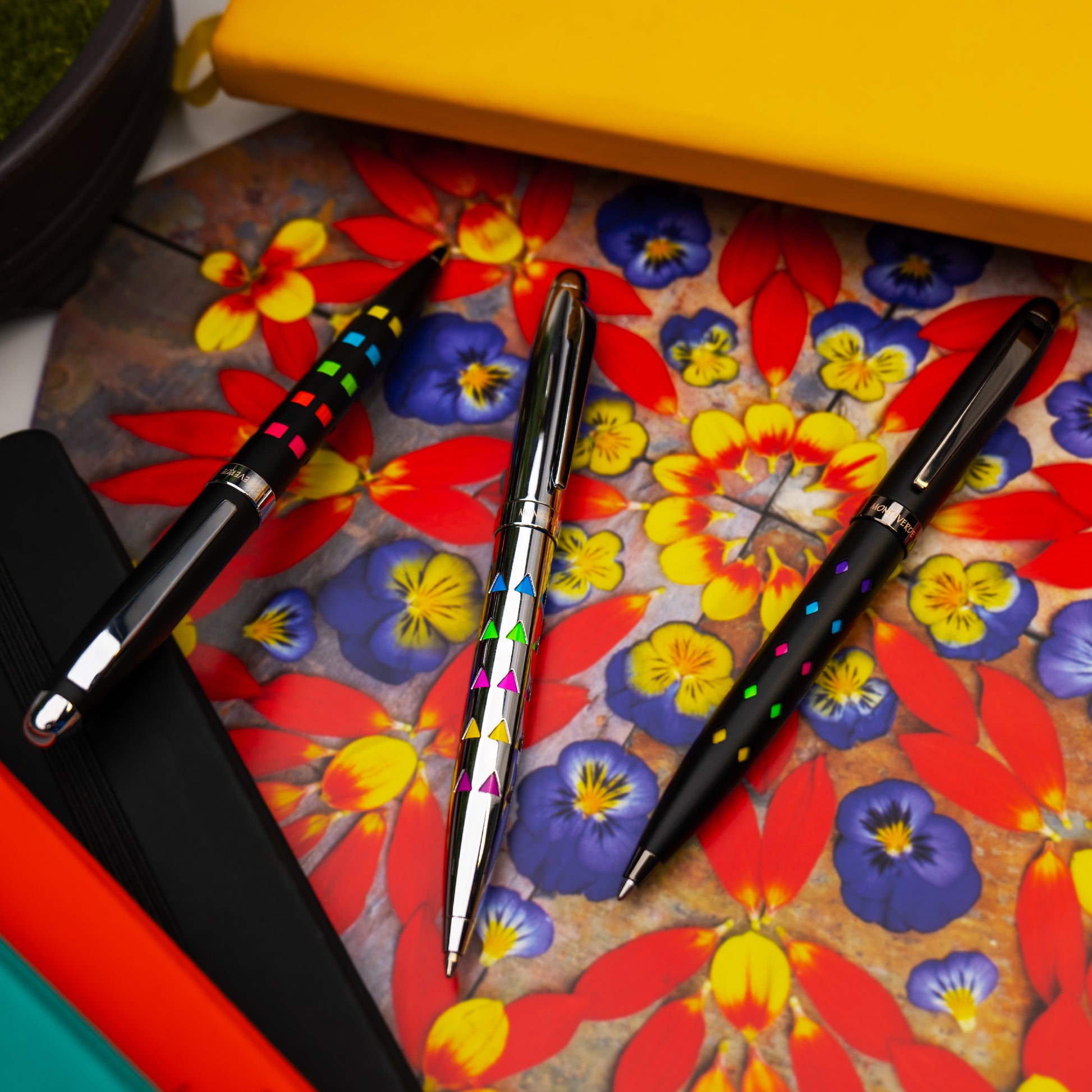 Experience the magic of movement with the Monteverde Illusia, a gel pen that redefines style and innovation. With a simple twist, the sleek barrel unveils vibrant color accents, creating a mesmerizing interplay of design and motion. Crafted for both precision and comfort, its perfectly balanced cylindrical form ensures an effortless writing experience, while the rich, smooth-flowing gel ink leaves bold, striking lines with every stroke. More than just a pen, the Illusia is a statement of modern sophistication -- where creativity meets ingenuity in every turn.