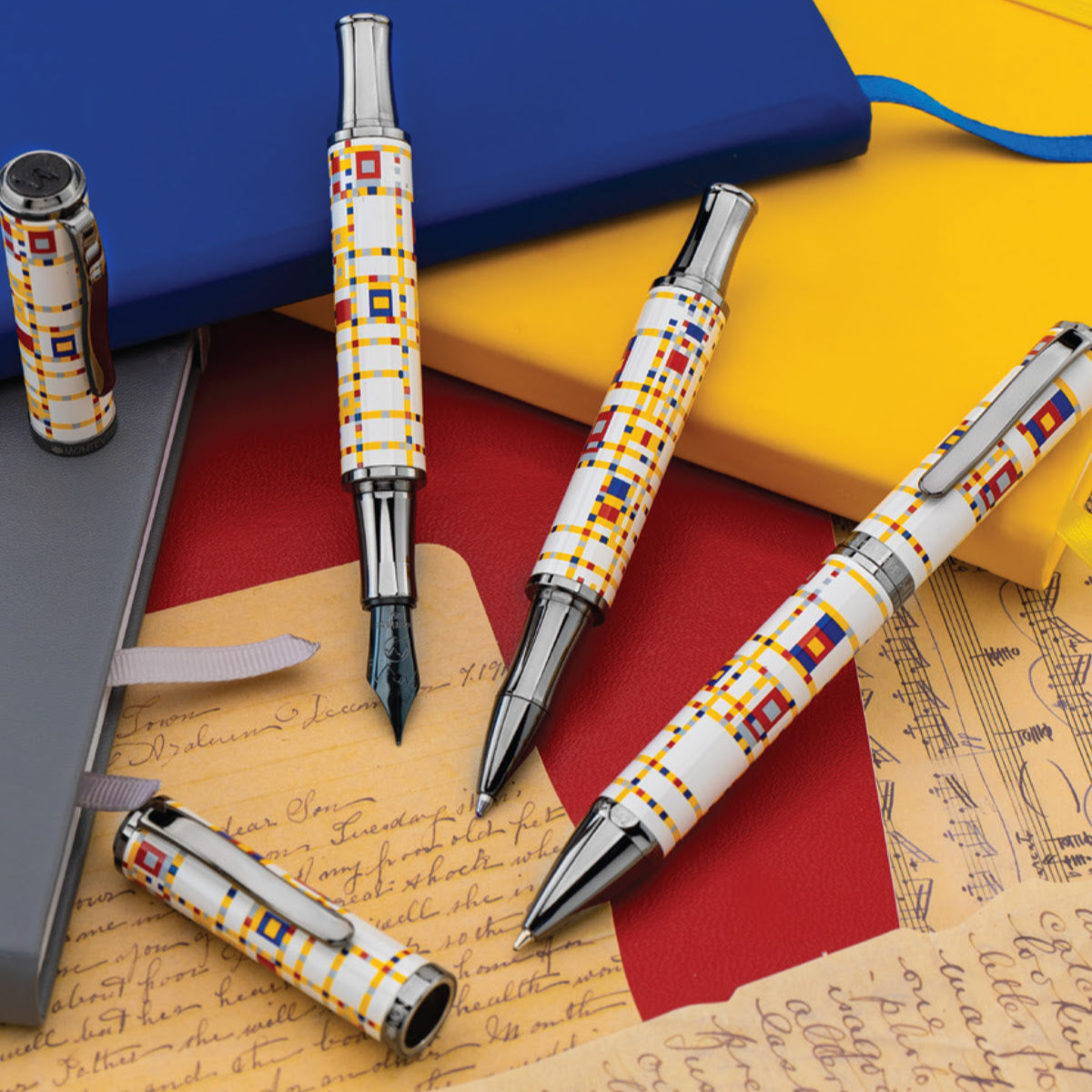 Introducing the Limited Edition Regatta Piet Mondrian Broadway Boogie Woogie! Following the success of the Limited Edition Regatta Piet Mondrian in 2024, we are proud to bring another painting to life on this smallest of canvasses. Inspired in 1942 by the non-stop energy of New York City and the rhythmic vitality of boogie-woogie music, Mondrian created what would become one of his most highly regarded masterpieces. The painting reflects a departure from his earlier black line, using colored blocks and lines to evoke the pulse of urban life and jazz culture. The Monteverde Regatta Broadway Boogie-Woogie pays tribute to Piet Mondrian's iconic art with a bold interpretation of the piece. Featuring vibrant primary colors balanced by black, white, and grey, the pen reflects Mondrian's philosophy of asymmetrical balance and the dynamic rhythm of New York City's vibrant nightlife and its famous boogie-woogie music.