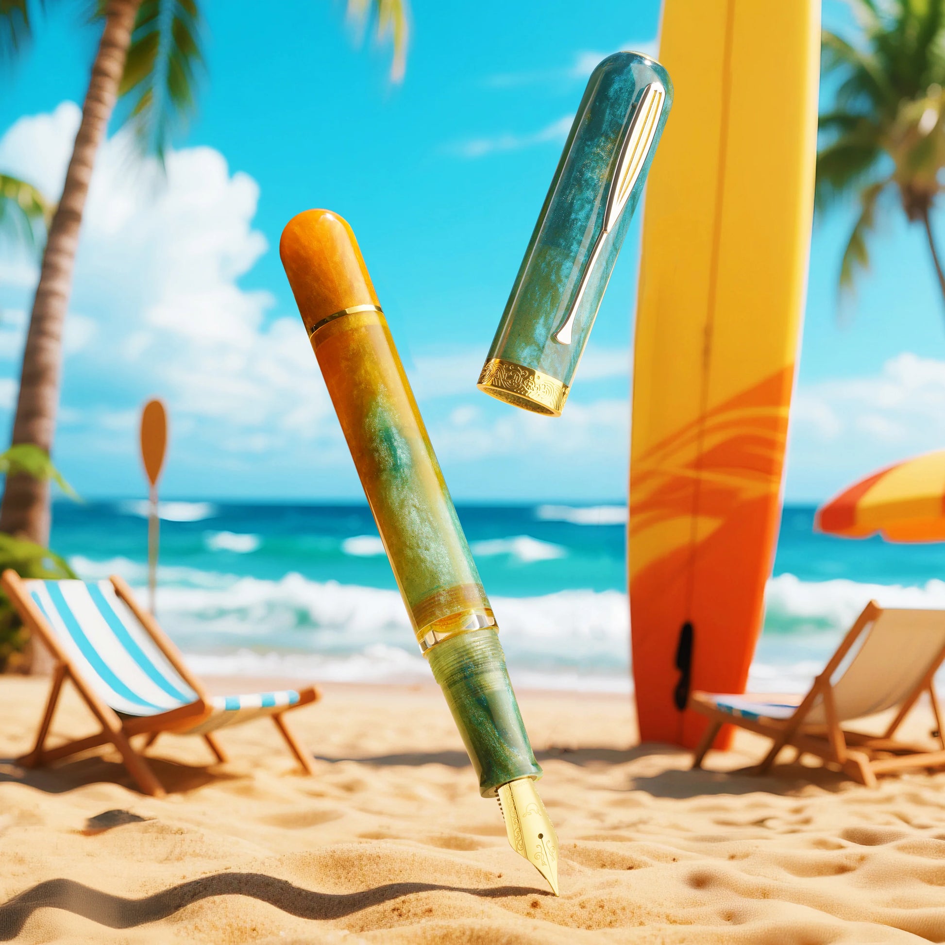 IntroducingVoyage — Hawaii, the newest stop in our travel-inspired series—arriving right on cue forpeak surfing season. This edition blends sea-glass blues and tropical greens in a luminous, marbled resin that shifts with the light, like waves meeting warm sand. Balanced in the hand and smooth on the page, it brings a little sunshine to every note.