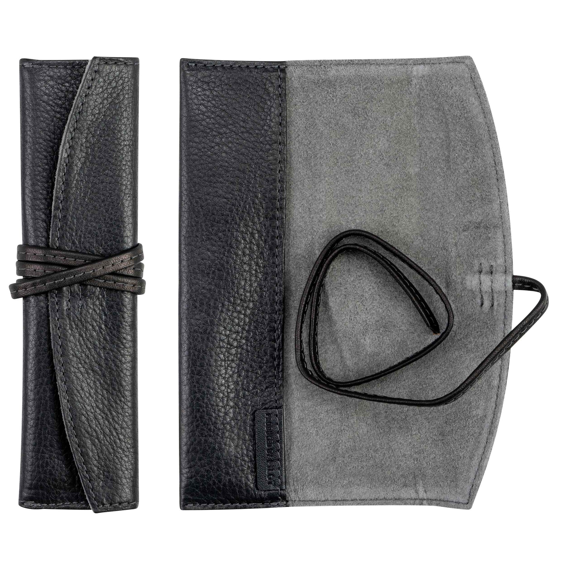 Indulge in refined luxury and impeccable craftsmanship with the Pilot Pensemble Leather Roll Pen Case, a sanctuary for your treasured writing instrument. Crafted with precision using supple black leather, this case is designed to cradle and protect your beloved Pilot pen with sophistication and grace.
