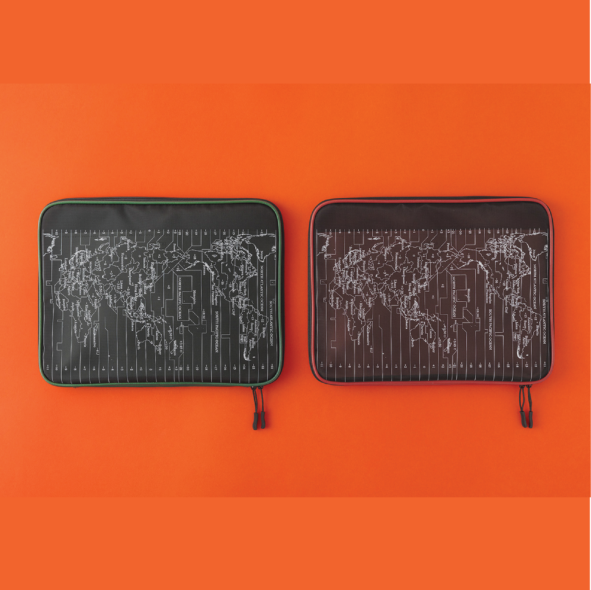 A simple and minimalist mesh case that fits today’s modern working style and creative endeavors. The A4 Mesh Zipper Case is designed to allow PLOTTERs to use digital tools alongside analog tools. The front cover is made with nylon mesh materials, printed with PLOTTER’s iconic world map with silk printing, to allow for limited but still clear visibility into the contents. An interior pocket is designed to hold its content more securely against the case. The semi-transparent Mesh Zipper Case can hold a 13-to-14-inch laptop or any A4-size documents.