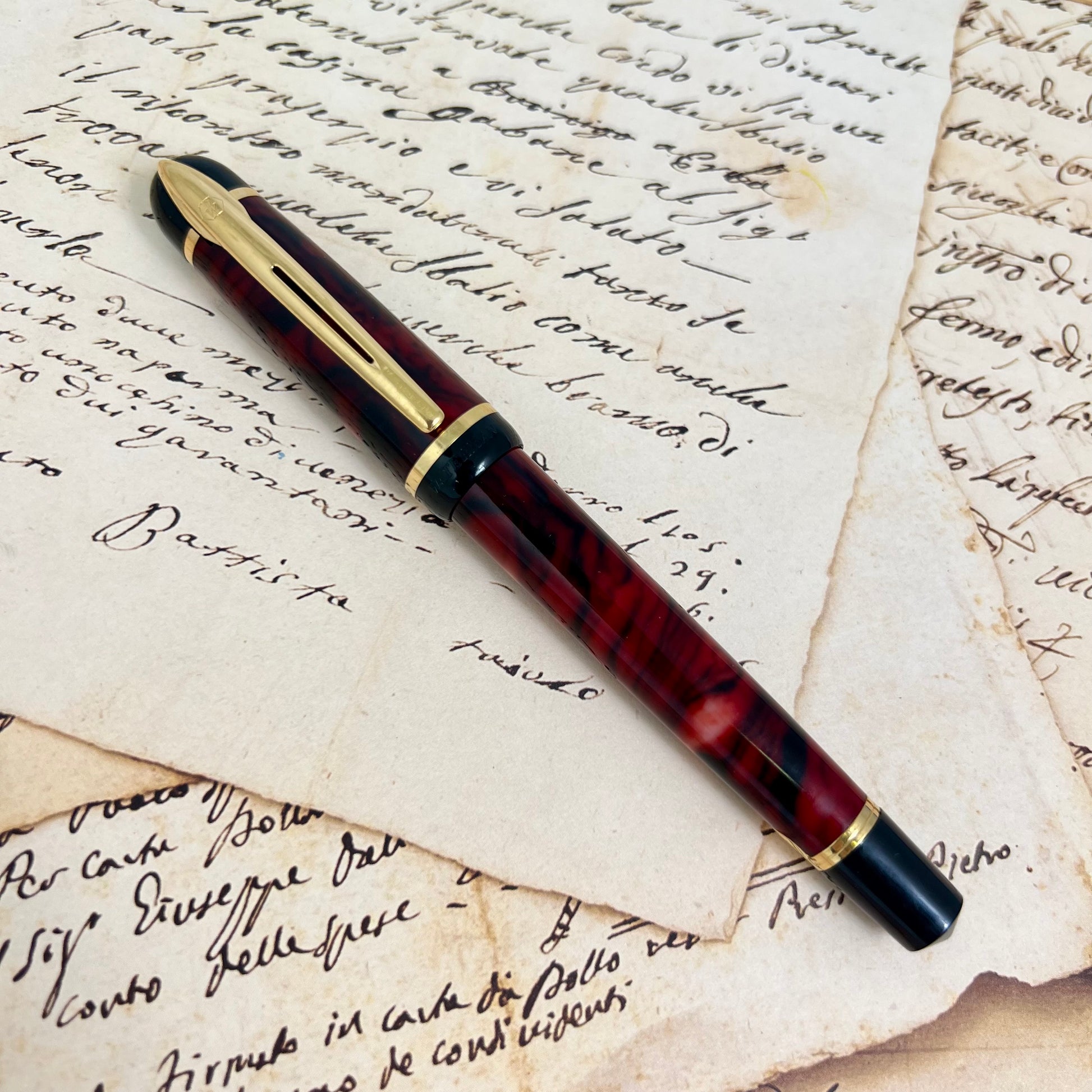 Experience luxury writing with this Pre-Owned Waterman Phileas fountain pen. Its unique red and black marble design is complemented by its lightweight and durable resin construction. The stainless steel nib provides a smooth writing experience, while its cartridge/converter fill option offers convenience and versatility.