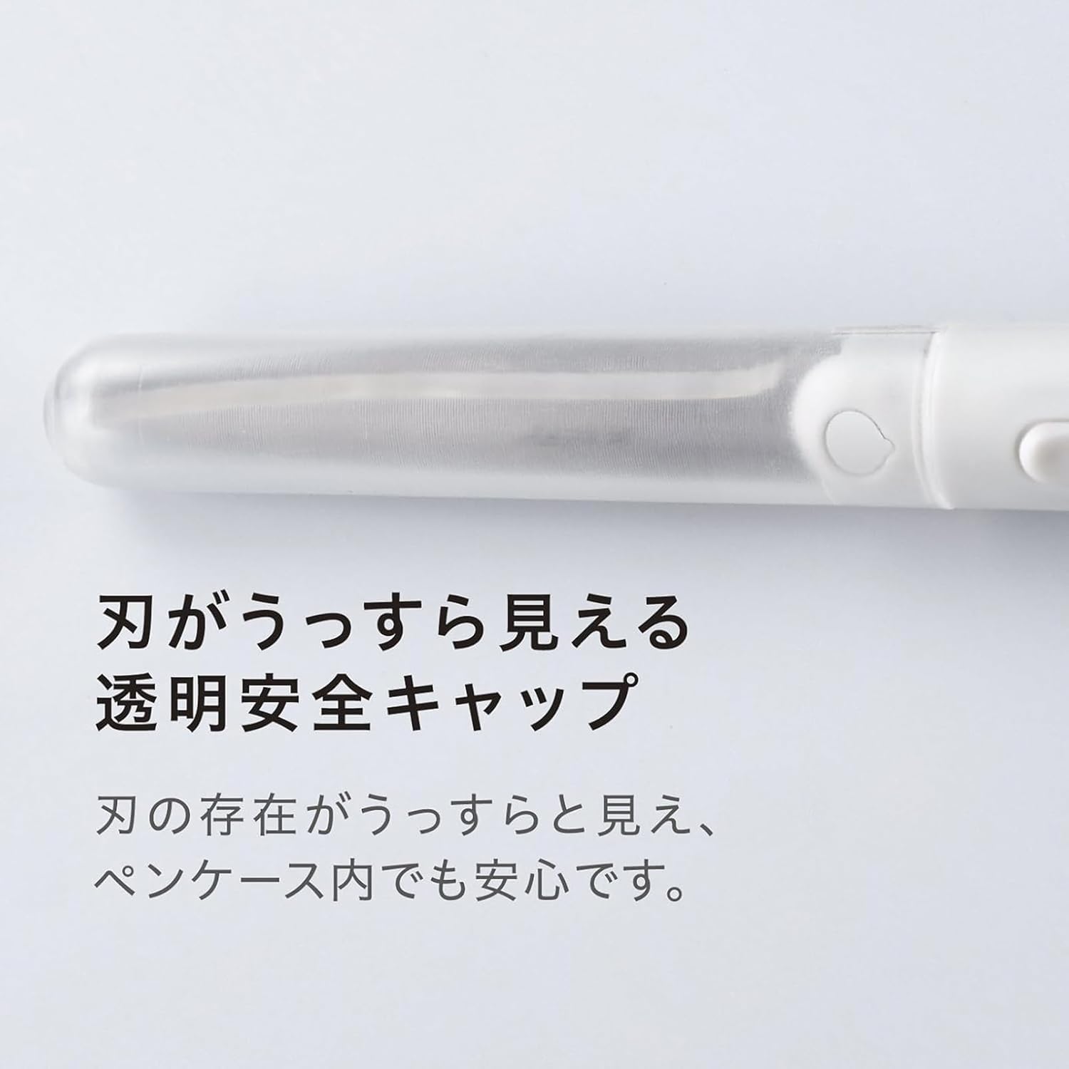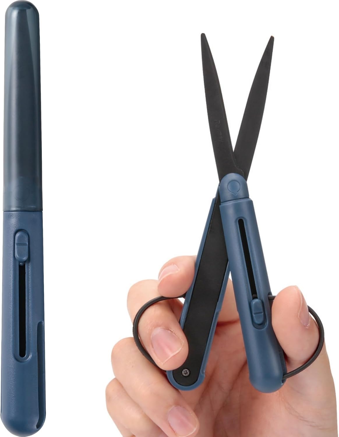 Tuck these slim, portable scissors into your pen case, so you'll never be without scissors wherever you go! The scissor loops can be retracted when not in use, making these the perfect size and shape to slip into your bag along with your pens and pencils. A translucent cap covers the blades and makes them easy to find amongst your things. These scissors feature stainless steel blades that can easily cut through a variety of material, from thin plastic to thick cardstock.