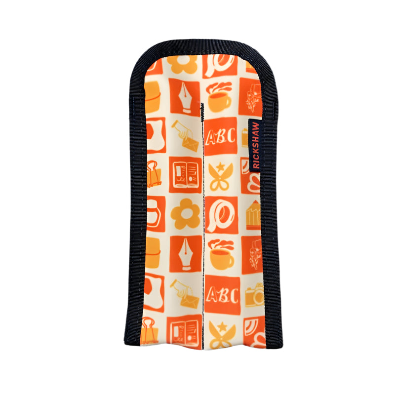 The Rickshaw Bagworks Stationery Icons 2-Pen Sleeve allows you to safely carry your favorite pens on-the-go in a plush lined case with an abstract take on computer coding on printed polyester canvas fabric for the outside.