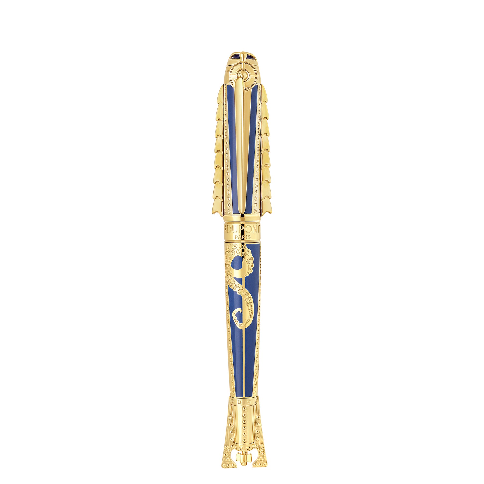 The collector set includes: S.T. Dupont Line D Eternity XL pen featuring interchangeable rollerball and fountain grip sections and iconic S.T. Dupont Le Grand Dupont lighter with exquisite guilloché details. Also includes squid pen holder, lighter holder and a replica of the Nautilus.