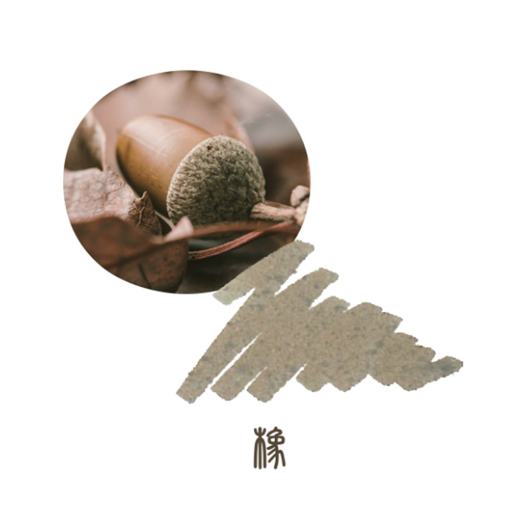 Tsurubami (Autumn Brown): Inspired by gathering handfuls of fallen acorns and delighting in their smoothness and shine, reflecting the foliage of autumn.