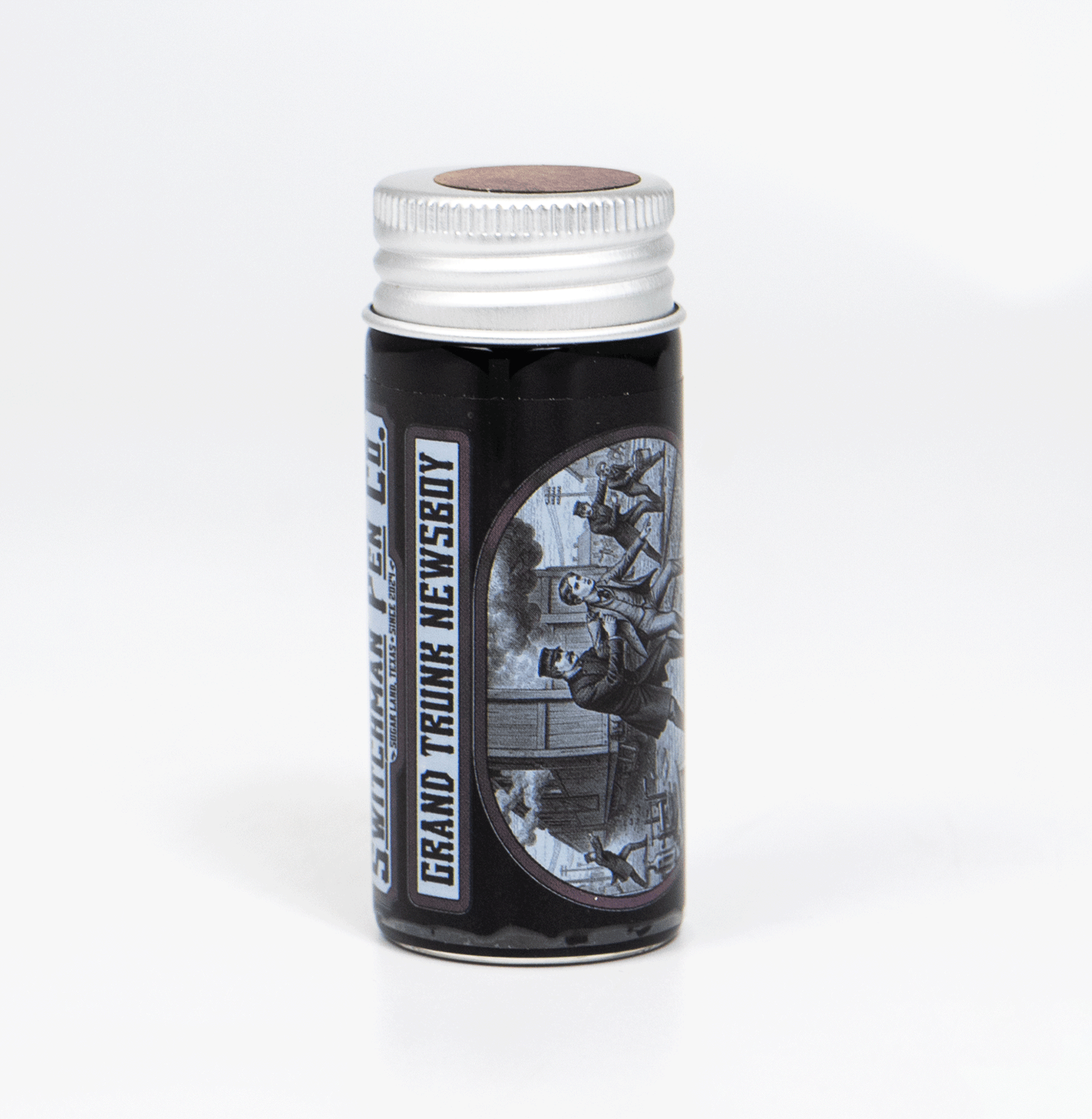 Switchman's Grand Trunk Newsboy, or Creosote Brown, remembers one of the more formative and absurd events in the life of Thomas Alva Edison. As a boy of 14, Edison worked selling concessions and newspapers of his own publication out of the baggage car of a train on the Grand Trunk line. When one of his experiments set the car ablaze, the conductor was none too pleased and very impolitely asked young Thomas to leave (and never return). It was the beginning of a life of innovation (and scandal) which reshaped the world. Creosote Brown is one of Switchman's most striking inks and is difficult to capture in either images or words, but provides shading across both tone and hue, from lightest tan to near black, from brown to purple. It is a true expression of those billowing clouds of chemical smoke, as beautiful as it is chaotic.