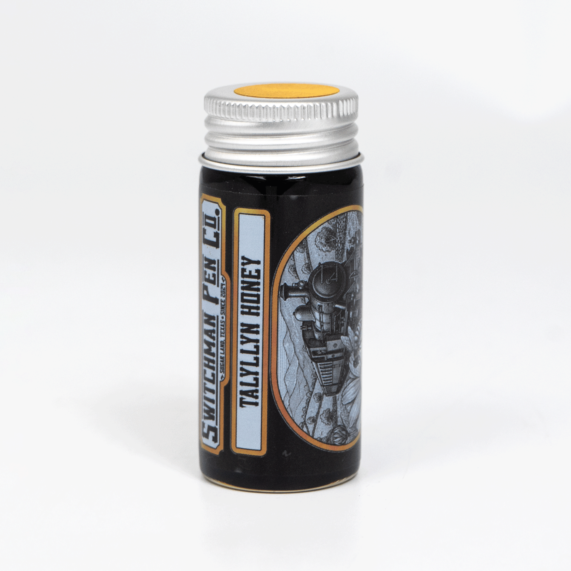 In Tywyn, Wales, a curious little railway can be found which has had an outsized impact for one of such small stature. The Talyllyn Railway was the first narrow-gauge railway ever to be preserved by a volunteer organization. One member of that organization, Reverend Wilbert Awdry, immortalized the railway as the Skarloey Railway in a series of novels based on his real-life experiences as a volunteer. Awdry's "The Railway Series" would be adapted subsequently into a television phenomenon called "Thomas the Tank Engine & Friends" (or simply "Thomas & Friends") by English television legend Britt Allcroft. "The Railway with a Heart of Gold" would fittingly turn their good will toward a number of local apiaries, helping to support the Welsh bee population while selling yields of honey in their store. Switchman's Talyllyn Honey, or Golden Amber, honors the curious history and preservationist spirit of the Talyllyn Railway with an ink inspired by the rich amber hues of pure honey.