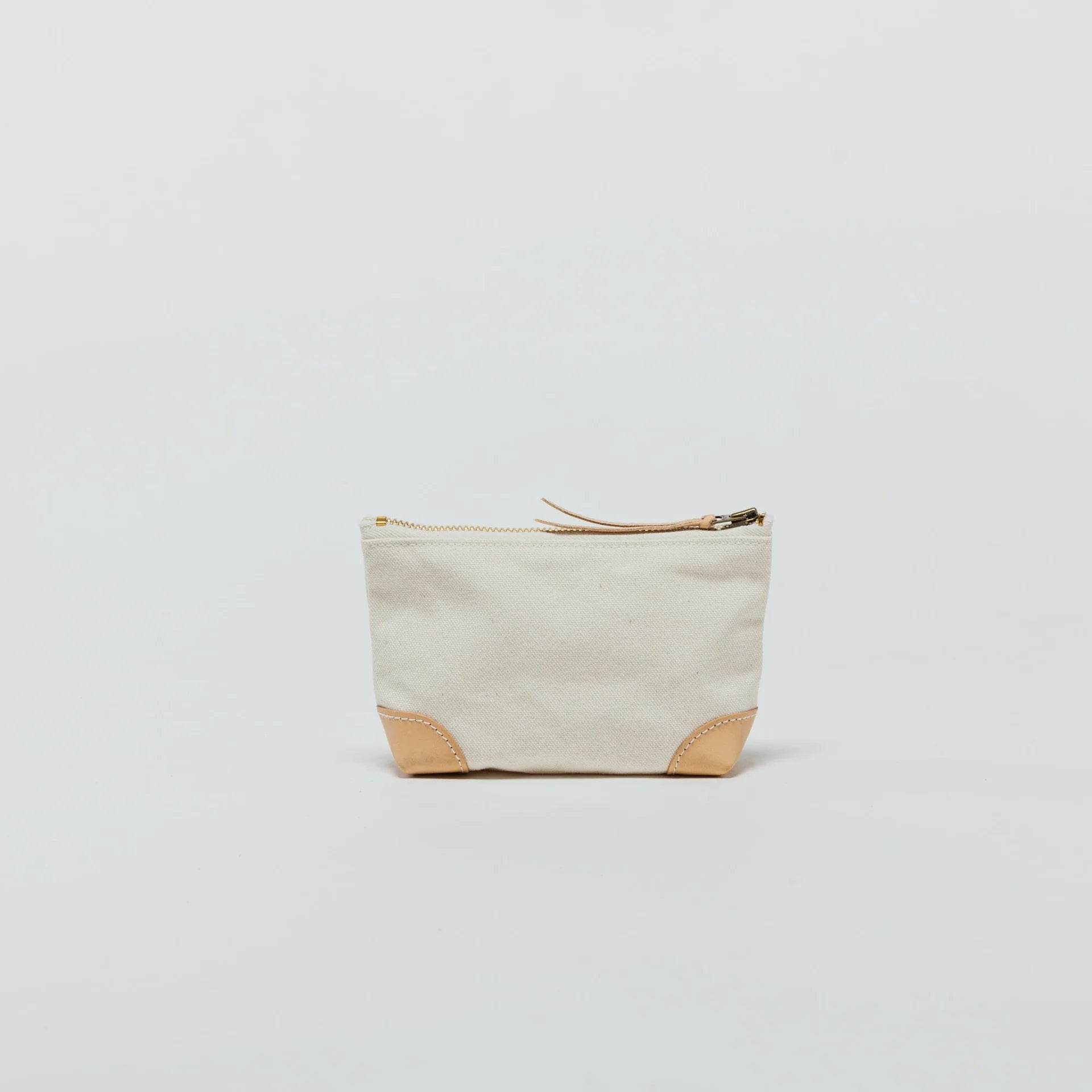 This pouch is made of colored canvas and has leather on the bottom corners, and is part of the same series as the Color Canvas Market Bag.