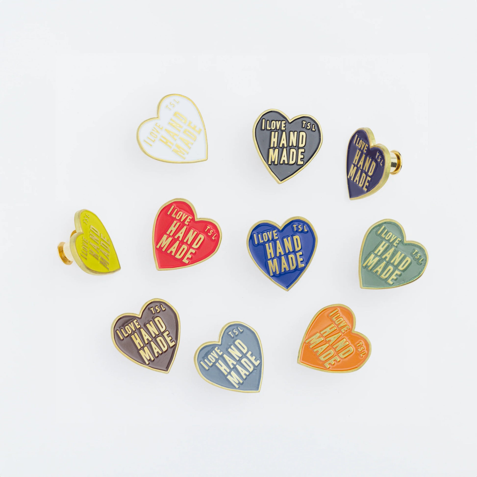 The familiar "I love HANDMADE" patch design is now available as a colorful pin. Available in 10 colors to match the paint colors of the engineer bag. The metal parts are made of solid brass with no plating. The color will dull as you use it, so enjoy the changes in its appearance over time.