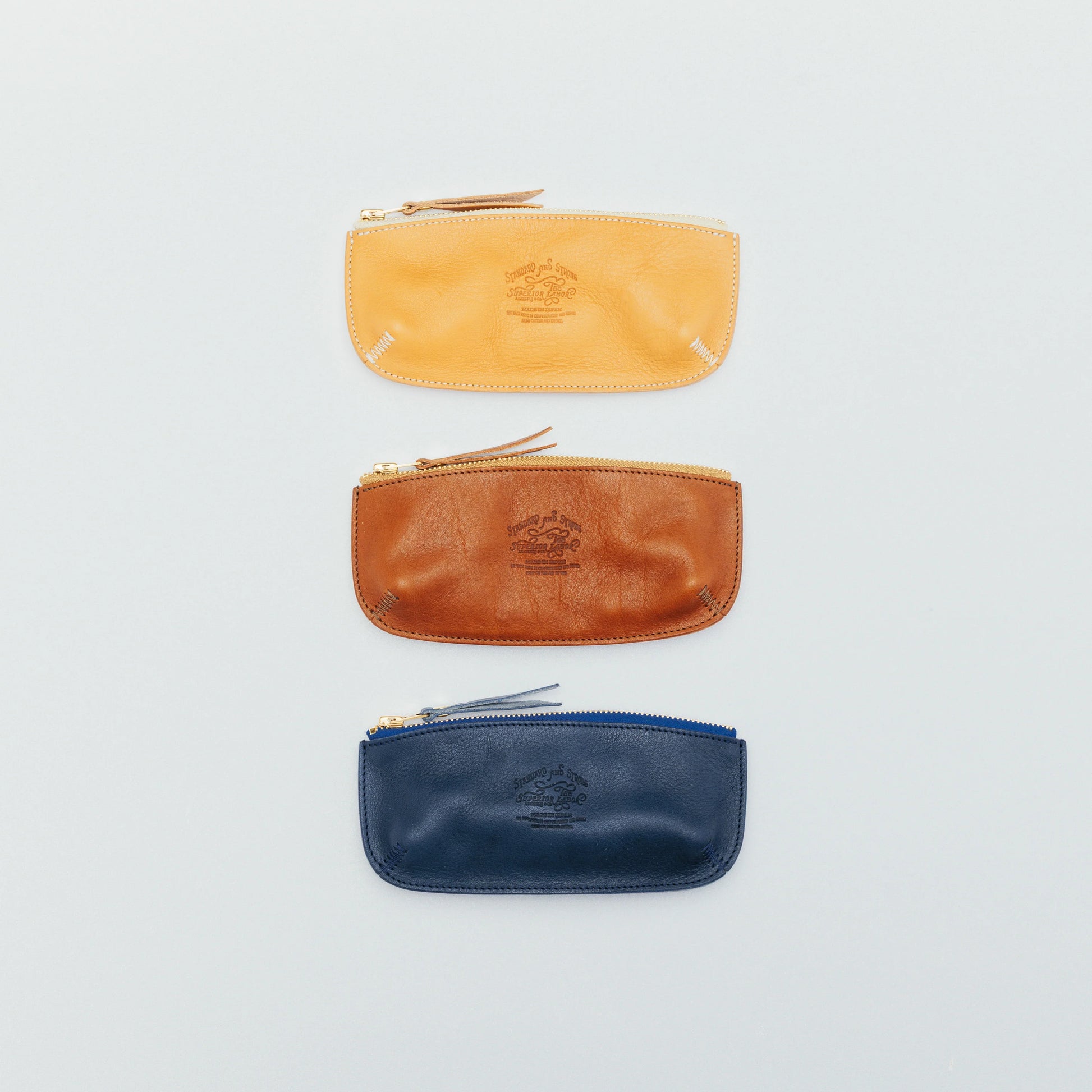 This pen case is finished by lightly moistening the leather and kneading it by hand,